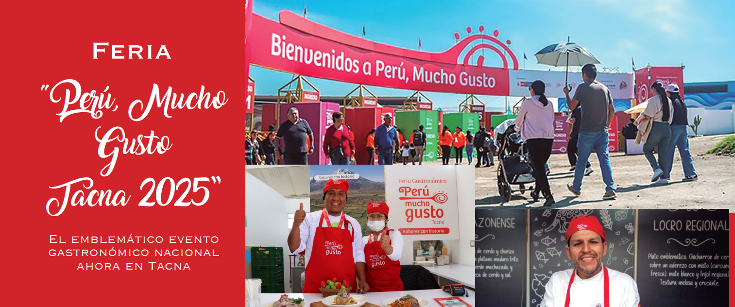 La feria gastronómica “Perú, Mucho Gusto” Tacna 2025, organizada por el Ministerio de Comercio Exterior y Turismo (Mincetur) a través de PROMPERÚ, se desarrollará del 25 al 28 de julio en el Parque Perú de Pocollay, consolidándose como un evento que trasciende lo culinario para convertirse en un espacio de transformación. Se espera la asistencia de más de 100 mil visitantes.